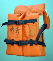救命胴衣は、総トン数20d以上の船舶に搭載するもので、国際条約によりその性能要件が決まっています。NS-08型及びNS-09型は胸囲1750mmの方に対応しておりますので、延長ベルト等は必要ありません。又、NS-08-C型は国内唯一の子供用と幼児用・兼用型の救命胴衣(小児用)です。